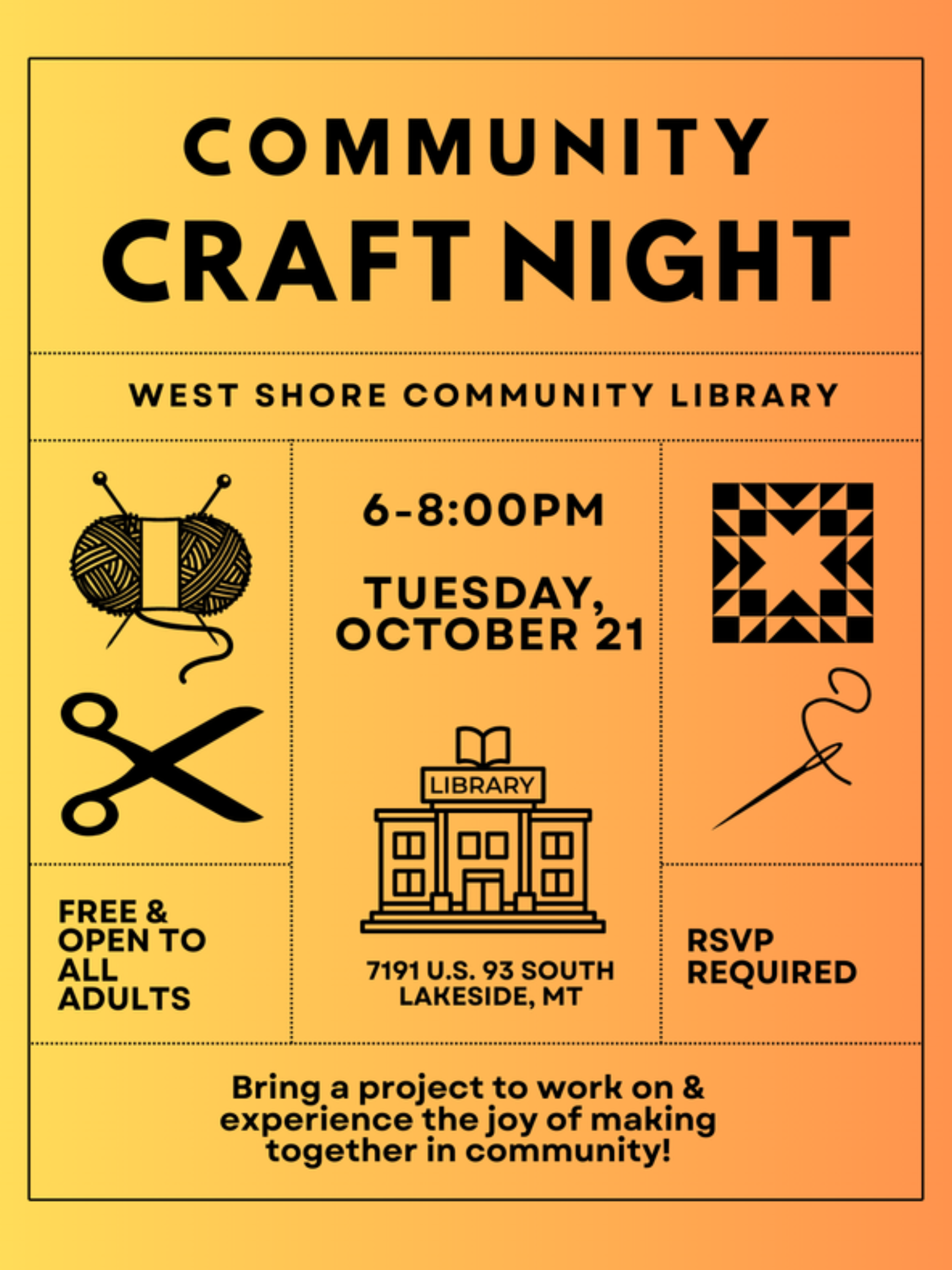 Free and open to all. Bring your own craft project to work on and experience the job of making together in community.